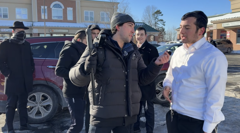 Throughout the video, Oliveira approaches Jewish residents in cars and enters local businesses, accusing the community of defrauding welfare systems.
