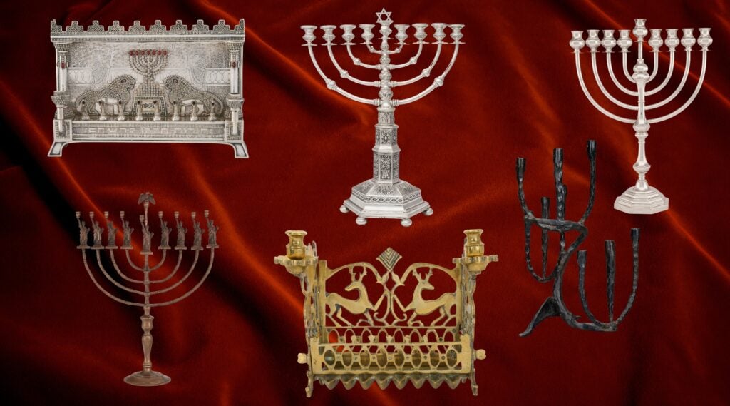 The menorahs, which come from the collection of attorney and Judaica collector Max N. Berry, will be sold by Christie’s in a private sale, also known as a selling exhibition, from Tuesday through Dec. 22. Their prices range from $5,000 to $30,000.