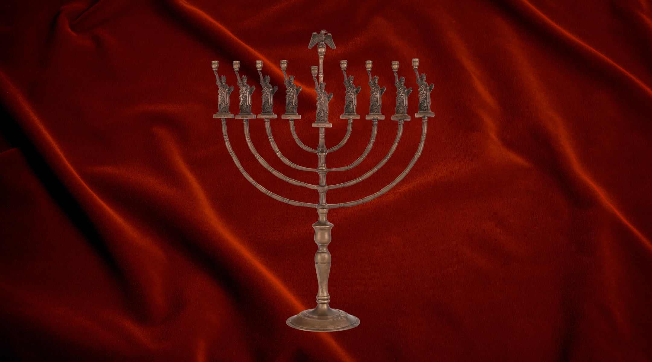 A silver Tiffany & Co. menorah from the year 2000. A bronze, 23-inch tall Statue of Liberty menorah made in 1986 in New Jersey by German-born artist Manfred Anson. A silver Hanukkah lamp, inlaid with carnelian stones, that was made in the early 20th century at the Bezalel school in Jerusalem.