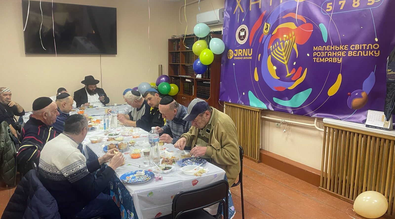 A Hanukkah event at the Chabad of Berdychiv, Ukraine, attracted a mostly older crowd. (Courtesy of Hennadiy Kysliuk)