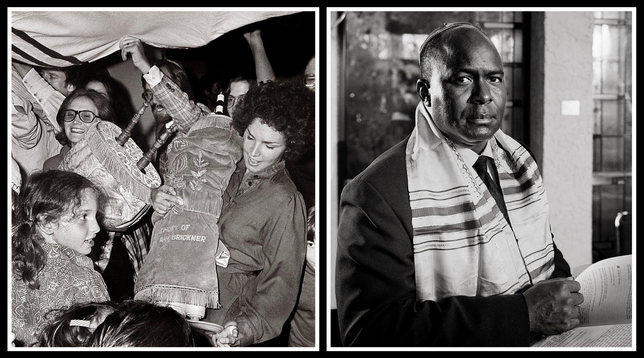 Left, “New York Havurah Simchat Torah: Judy Samuels Meirowitz Tischler, 1976.” At right, “Police Chief Reuben Greenberg, Charleston, S.C., 2000.” (Bill Aron, American Jewish Historical Society)