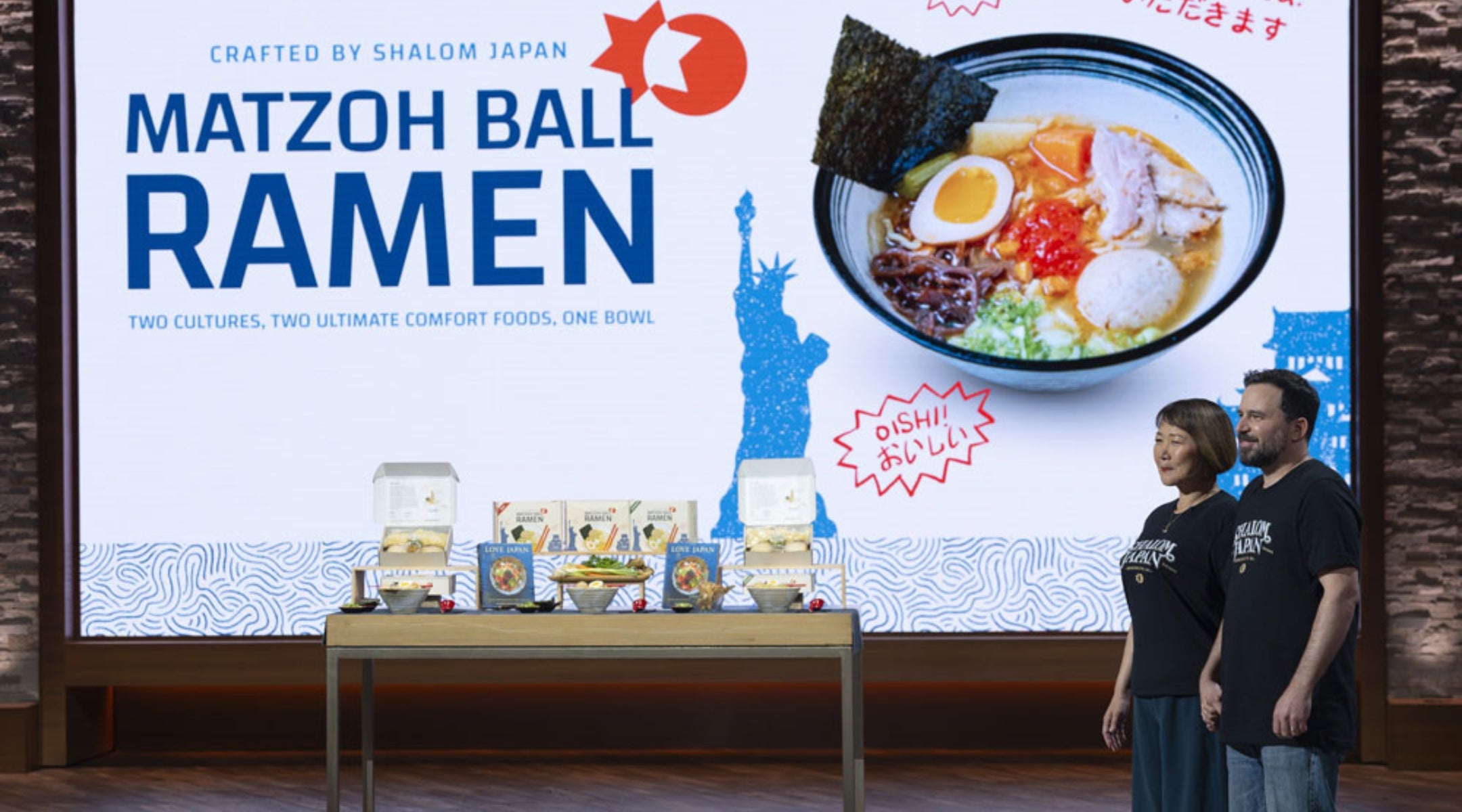 Sawako Okochi and Aaron Israel sought $200,000 and a 20% stake from one of the business reality show’s “sharks,” or judges, for the at-home version of the matzah ball ramen that has been on Shalom Japan’s menu since it opened in Williamsburg in 2013.