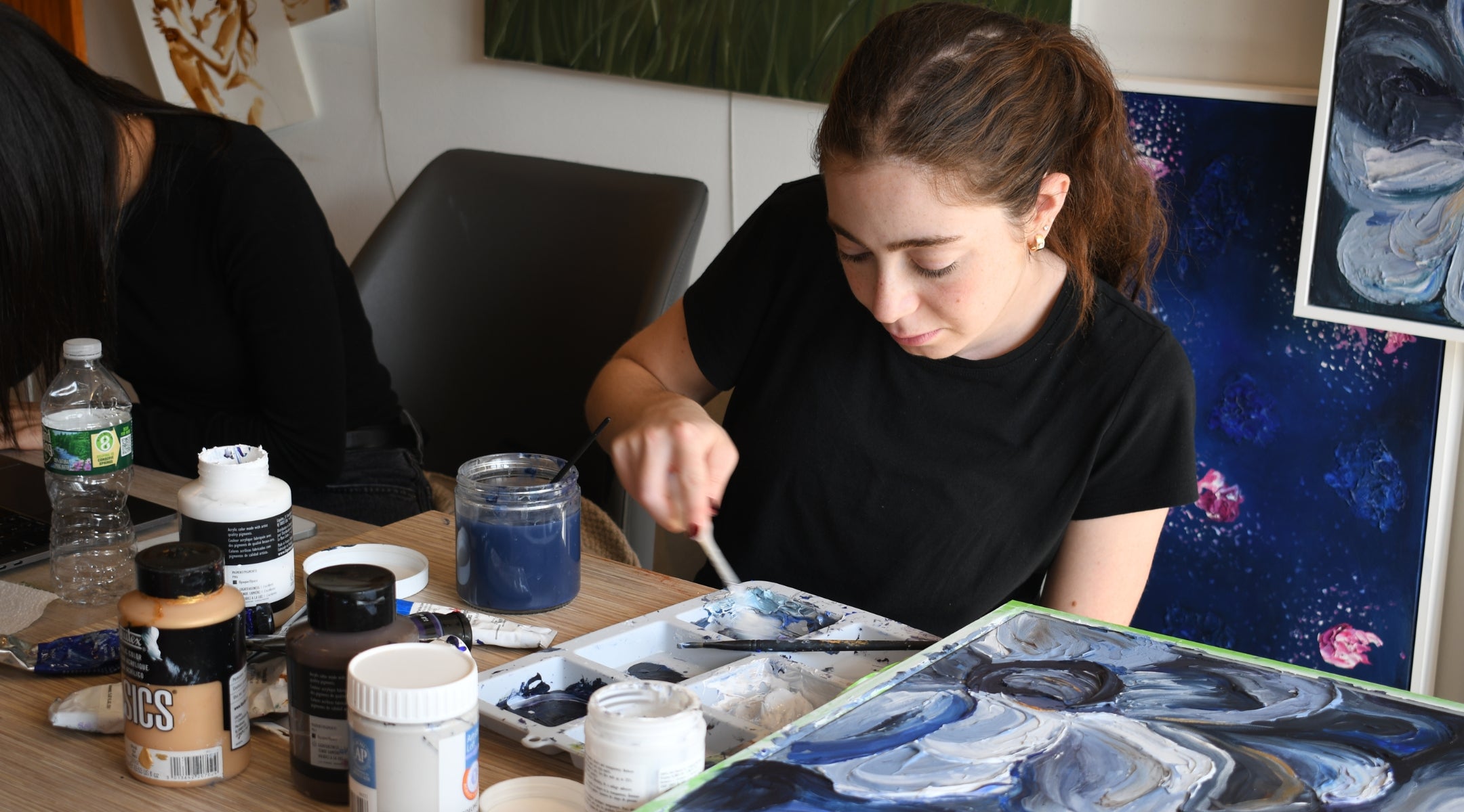 The studio also functions as a space for the neighborhood to engage in the arts. Several times a month, Muse holds events such as art classes, paint-and-sip nights and museum tours, taught and led by its members, and always with the Jewish holiday schedule in mind. Shelley Shamah even had her 22nd birthday party, a drink-and-draw night, in the space with a dozen of her friends.