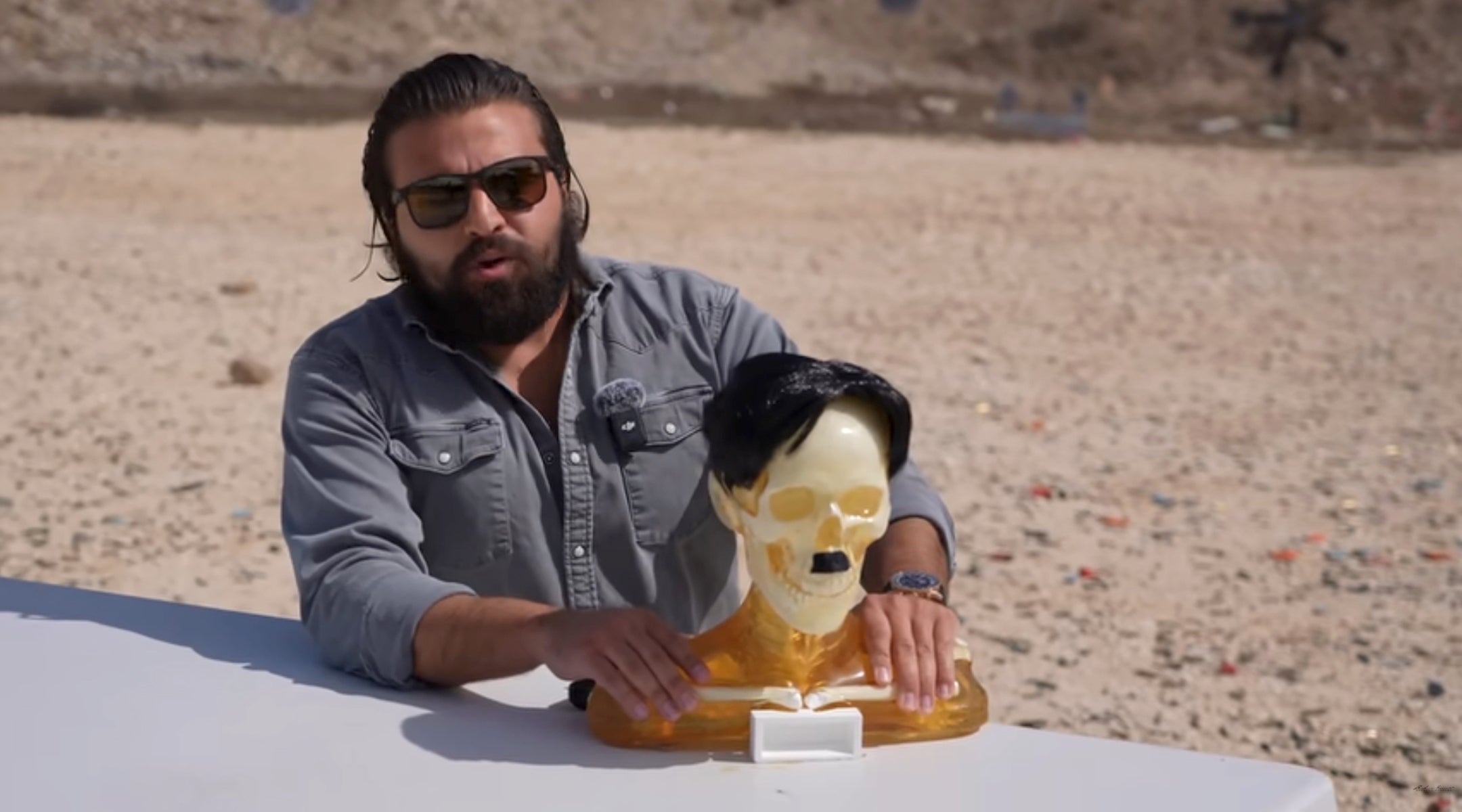 In Herrera’s 2025 video, titled “Testing The Gun That Killed Hitler,” he wields the firearm Hitler used to shoot himself while cracking jokes about Nazi salutes and conspiracy theories imagining Hitler’s survival in Argentina. It’s not the only time he has waded into such territory.