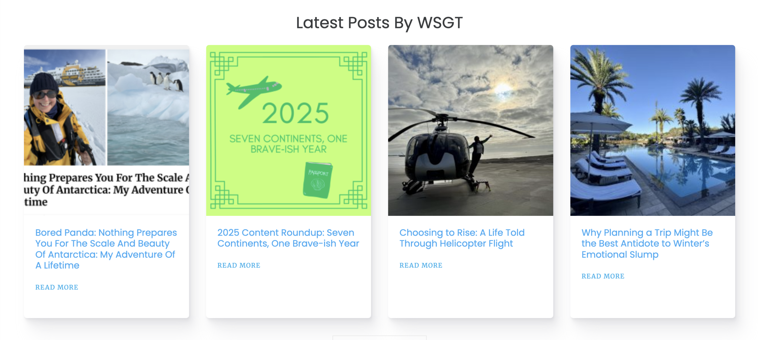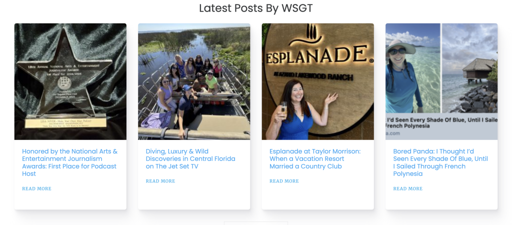 Recent stories include: Helicopter adventures, Underwater Adventures with my scuba dive at EPCOT, my first airboat and staying at Four Seasons Orlando, Tahiti with Windstar Cruises, Caribbean with NCL Escape, and three new features with Bored Panda on Antarctica, French Polynesia and Florida.