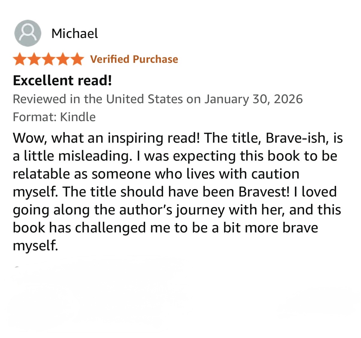 Michael wrote: “The title, Brave-ish, is a little misleading. The title should have been Bravest… this book challenged me to be a bit more brave myself.”