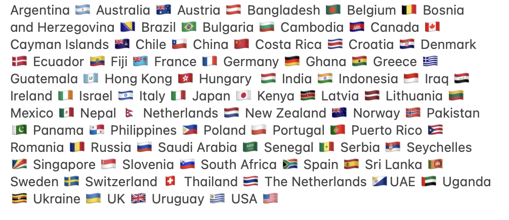 Recent additions also include: Indonesia 🇮🇩 Croatia 🇭🇷 Serbia 🇷🇸 Hungary 🇭🇺 Brazil 🇧🇷
