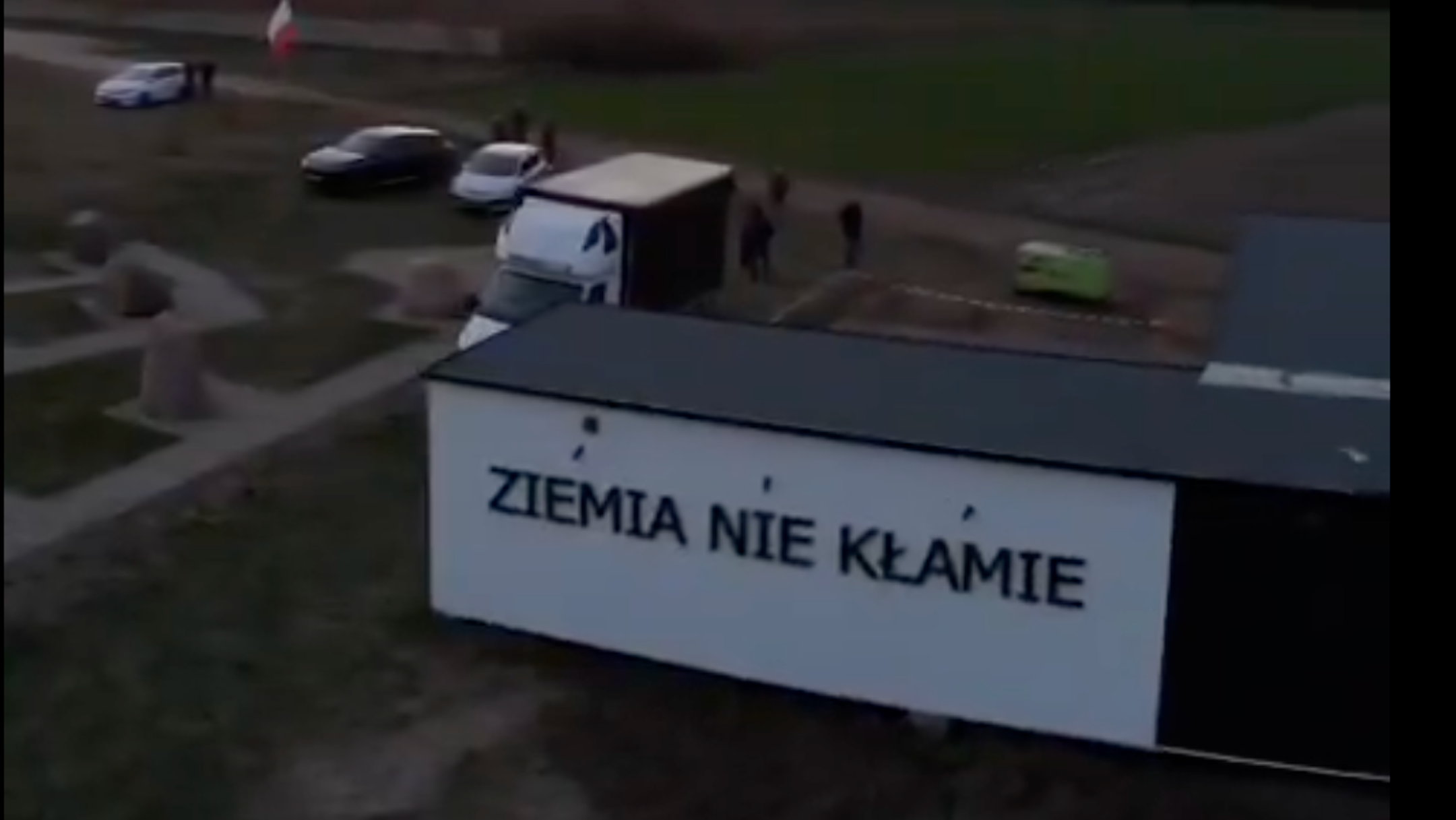 In addition to the exhibit that appears to call for exhumations, another shipping container installed this month demands “conditions for seeking and defending historical truth,” which it says are “in Poland’s national interest.”