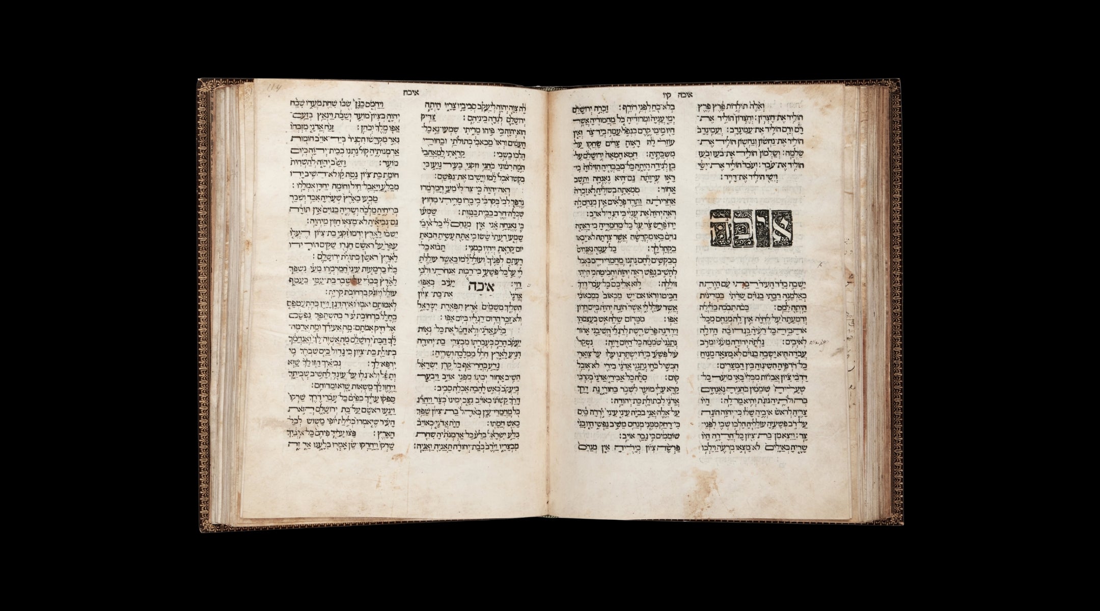 A Hebrew Bible printed on parchment in Naples in 1492 by the Soncino family press. (Courtesy Sotheby’s)