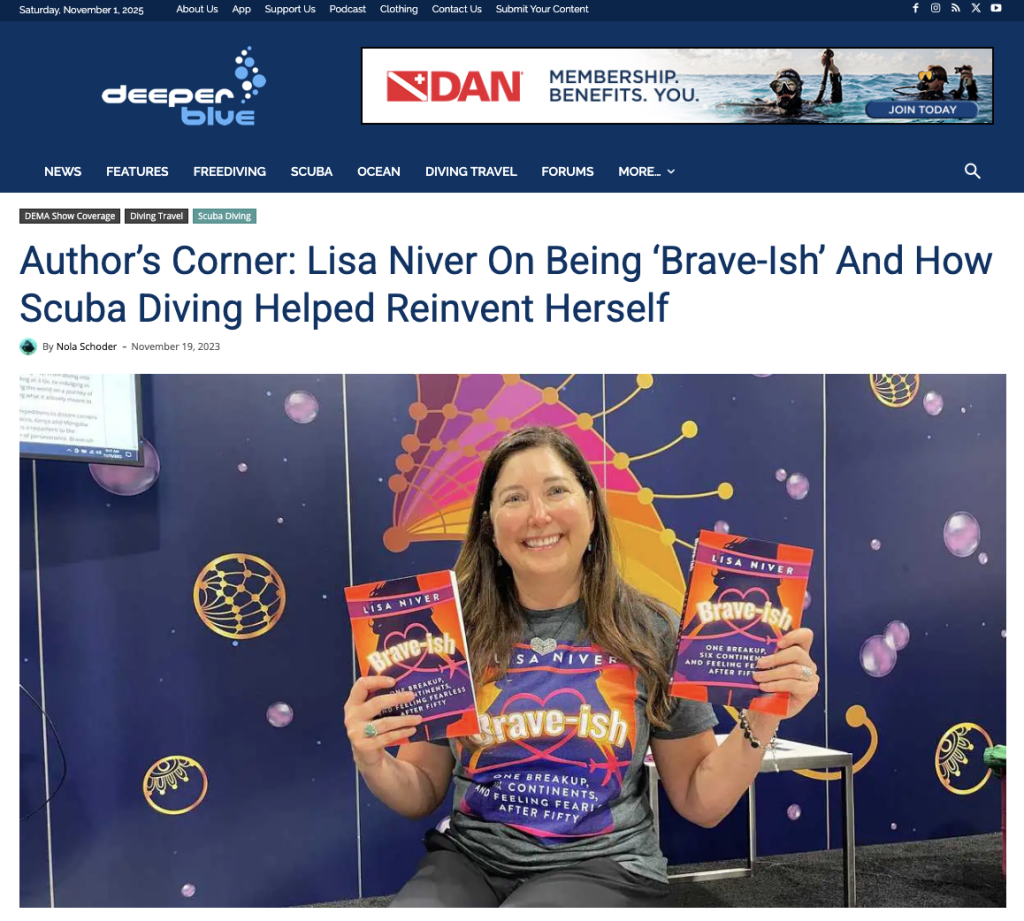 As BRAVE-ish celebrates its second birthday, I’m grateful to continue sharing its message with divers who understand the language of depth. The book is about rebuilding your life, rediscovering your courage, and saying yes to adventure again — whether that adventure is underwater or within your own heart.