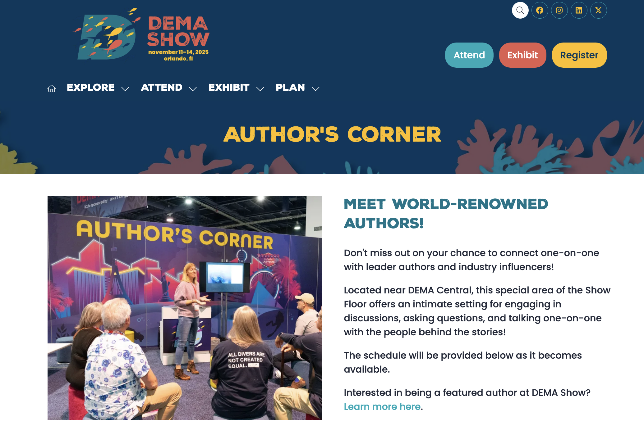 If you’ll be signing my book at the DEMA Show in Orlando at the Author’s Corner. I’d love to meet you — to swap dive stories, talk about travel, courage, coral, camera gear, whale sharks, bucket lists, or whatever adventure is calling you next.