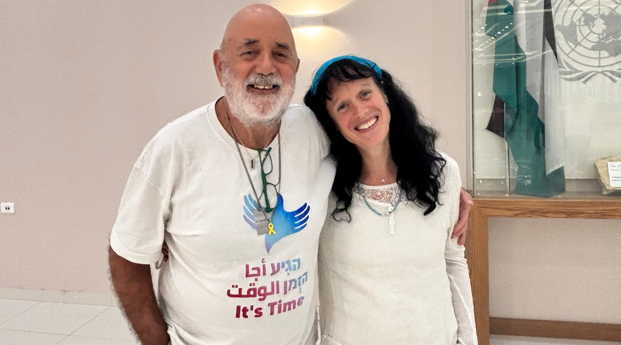 Baruch Velleman and Shoshana Lavan moved to Israel to participate in peace activism. They met with Palestinian Authority President Mahmoud Abbas in Ramallah, Oct. 9, 2025. (Steven Davidson)