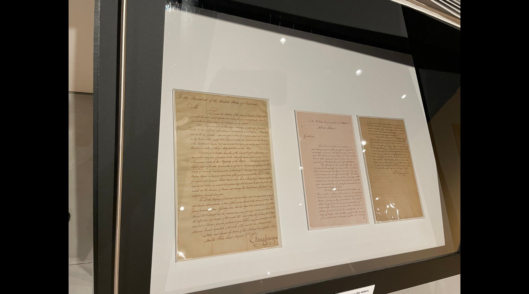 A letter exchange between Touro Synagogue president Moses Seixas and American President George Washington. (Jackie Hajdenberg)
