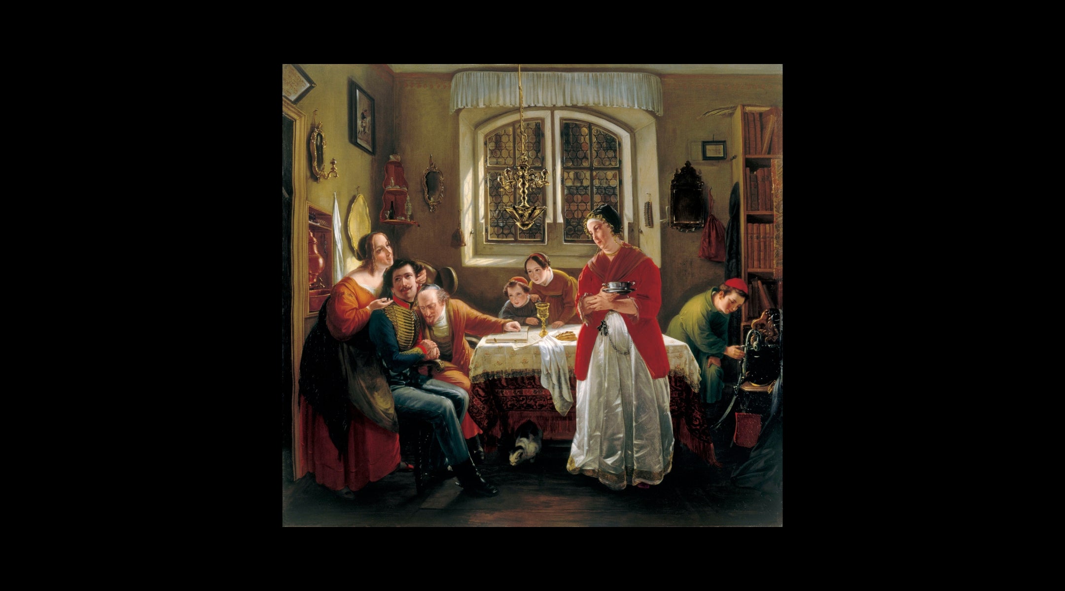 3. “The Return of the Volunteer from the Wars of Liberation to His Family Still Living in Accordance with Old Customs” (1833–34) by Moritz Daniel Oppenheim