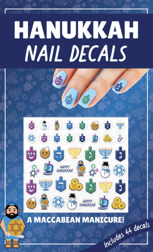Do you want to show up to Hanukkah parties with the most festive nails possible? Then purchase Midrash Manicures’ Hanukkah Nail Decals ($14), which feature dreidels, menorahs, and latkes and last for up to eight days – just like the miracle! Another fun gift idea from the site is their Matching Family Hanukkah Pajamas in tie dye or splatter paint ($36-$46) so the entire family can match for the holiday.